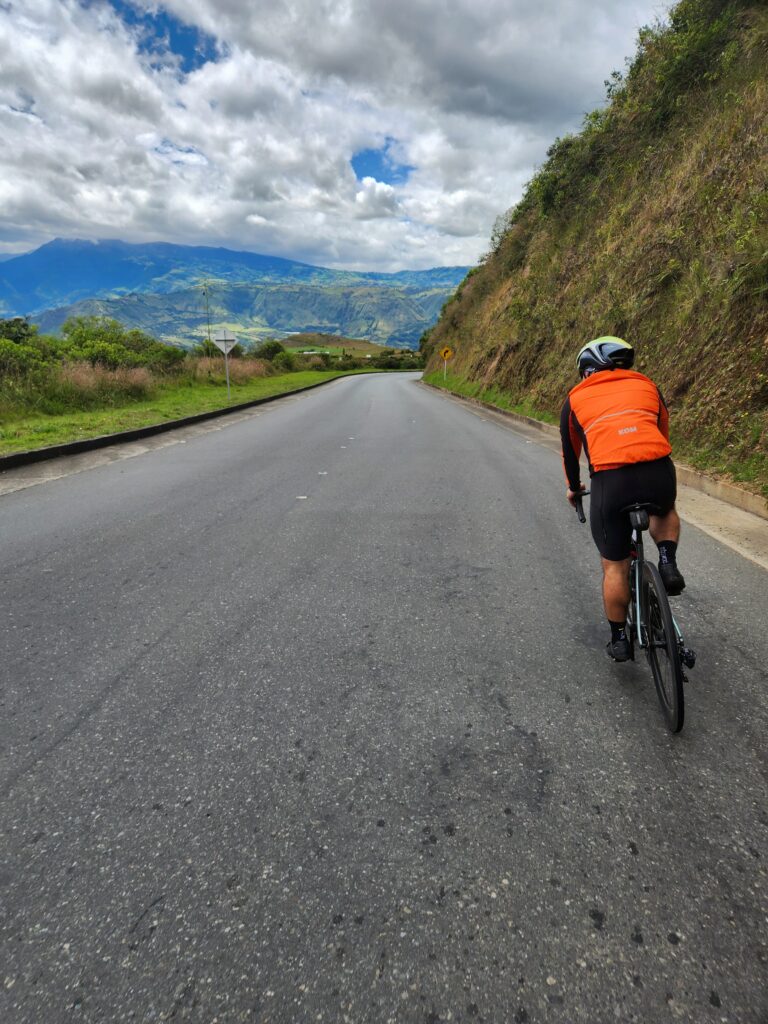 The road had two lanes, a wide shoulder, and light traffic, making it one of the safest places I have ever felt while cycling. We reached the village of Pedregal just as the church bells rang for the first mass of the day. With the heat of the canyon rising and the sun already shining, we began the second climb toward 3,000 meters above sea level: twenty eight kilometers at an average of 4.4 percent. The first three kilometers were the most striking of the entire route. The sight of the Guaítara River winding through the depths of an immense canyon was an unforgettable surprise that stayed etched in memory.